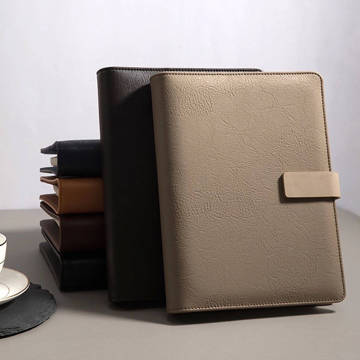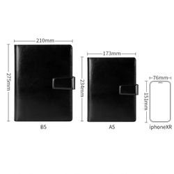 It contains file pocket, calculator pocket, business card pockets and a pen holder.